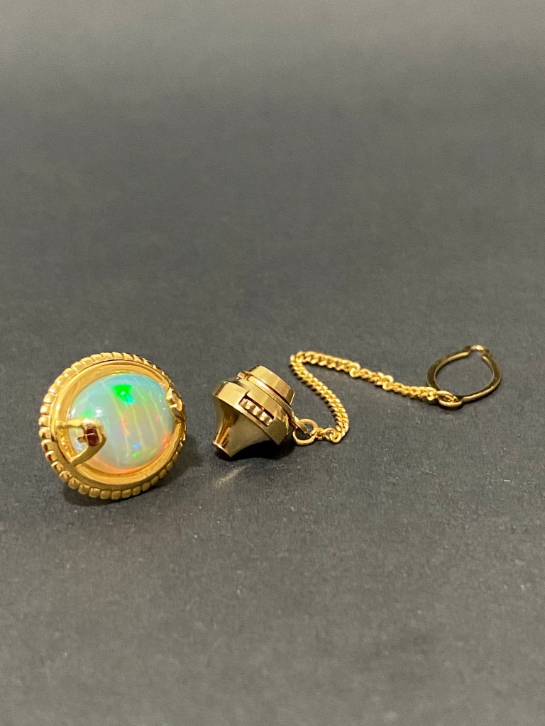 利用3D列印技術來為客戶製作客製化珠寶,總是會鼓勵客戶多加入自己的意見,雖然複雜的結構或是繁複的圖案是3D列印珠寶的一大強項,但實際上這些繁複的作工也同樣會反應在製作工序以及售價上,實際上並不是所有的客戶都喜愛複雜的設計。下面這件蛋白石的領帶夾就是一個很好的例子。