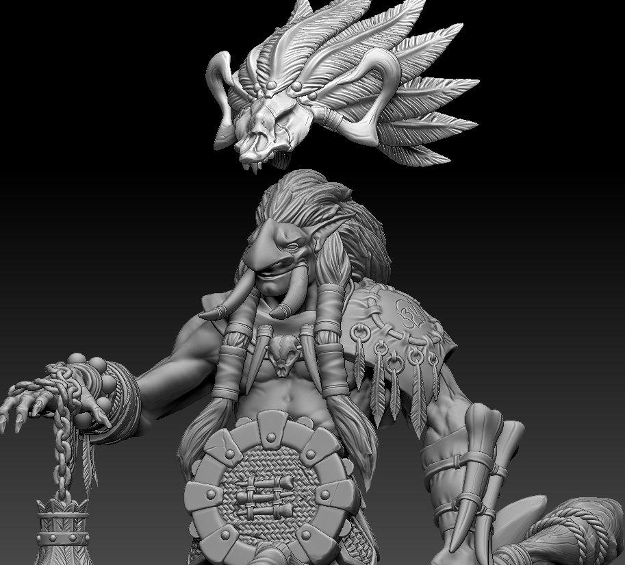 我們特別挑選兩件特別值得鍾愛的模型,第一個是這個臉上覆著獸骨面具的…惡靈酋長(??)踩在巨大的獸骨上,有點印第安風格但仔細看都是金屬風格的飾品,讓我們又不禁想把這副面具用銅來鑄造。