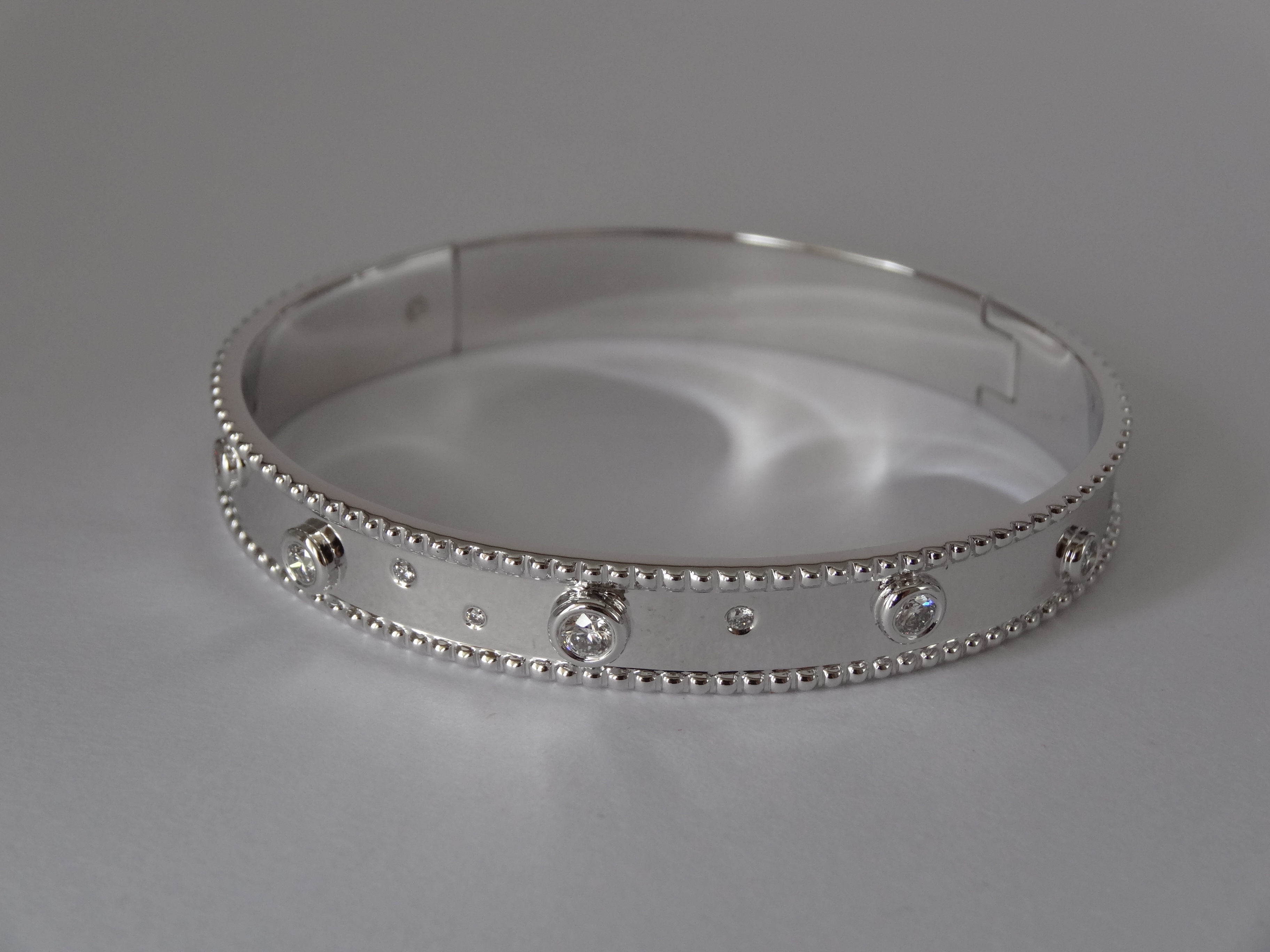 早期我曾經為好友製作過一支硬式手環,多少帶著實驗性質,由於找不出更好的開關設計所以也只能向卡地亞"致敬",這麼幾年下來她還是帶著那一只手環,我心想,如果現在再做一次,肯定能在細節處理得更好,但這麼多年了,我依舊沒有想出更喜愛的開關方式,讓我再次讚嘆卡地亞50年前的設計是永遠的經典。